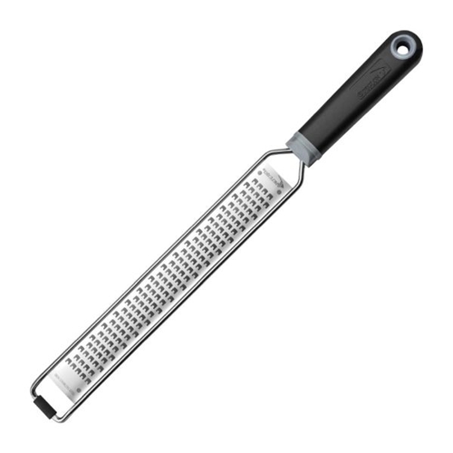 Featuring a strong TPR and polypropylene handle, the grater is incredibly secure in the hand, allowing you to grate with confidence. With super-sharp blades, every swipe of food is effortless, effectively cutting into finely-grated sections. The medium grater is ideal for raw vegetables, apples, carrots, nuts and other similar foods, as well as semi-soft cheeses. The grater can also be used for coarse grating of ginger.